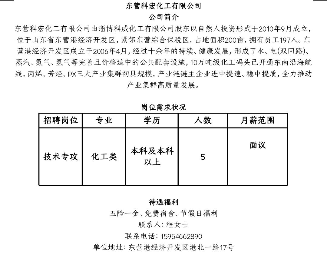 东营科宏化工有限公司招聘简章