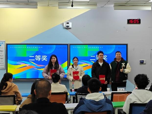 大赛的颁奖典礼环节同样亮点纷呈。学工办主任刘强珺宣布获奖名单,并举行了隆重的颁奖仪式,对表现优异的选手予以表彰。颁奖结束后,杨利红作总结讲话,她对本次大赛的成功举办表示祝贺,肯定了参赛选手的精心准备与精彩表现,同时寄语全体学子以此次大赛为契机,进一步明确职业方向,做好职业规划,在未来的职业道路上稳步前行。最后,全体嘉宾、评委与获奖选手合影留念,为本次大赛画上了圆满的句号。
