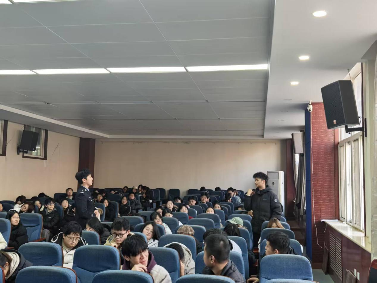 讲座伊始,曹警官以当前校园反诈及网络安全的严峻形势为切入点,用详实的数据、典型的案例,深刻剖析了近年来高发的电信网络诈骗类型。针对大学生群体,他重点讲解了网络贷款诈骗、刷单返利诈骗、虚假购物诈骗、游戏账号交易诈骗、冒充老师及亲友借钱等常见诈骗手段与识别技巧。曹警官结合经办案例,生动还原了诈骗分子的话术陷阱与作案套路,让在场师生直观感受到电信网络诈骗的隐蔽性与危害性,警示大家时刻保持警惕,切勿因小失大。在网络安全板块,曹警官围绕个人信息保护、网络谣言辨别、不良网络信息抵制等内容展开讲解。讲座过程中,曹警官与现场师生进行互动交流,耐心解答大家提出的各类网络安全相关问题,针对学生在日常学习生活中可能遇到的安全隐患进行细致指导,现场氛围热烈活跃。